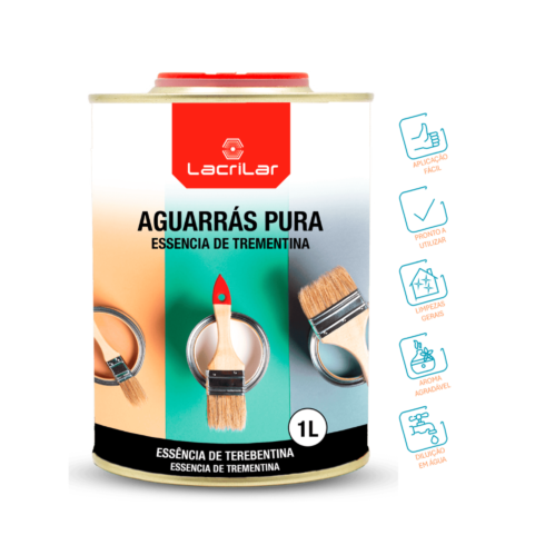 Devido ao seu elevado poder desengordurante, a Aguarrás Pura, também conhecida como Essência Terebintina é ideal na limpeza de pincéis e trinchas, utilizados na aplicação de verniz, tintas. Se optar por 4 latas, fica mais barato >>>