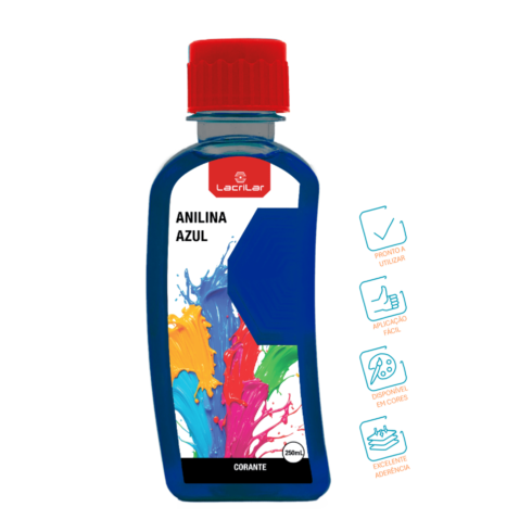 Anilina líquida da marca Lacrilar, indicada para trabalhos manuais. Pode ser utilizada para tingir diversos tecidos e não tecidos.