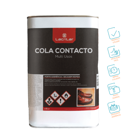 A Cola de Contacto serve para uma grande variedade de trabalhos como calçado, costura, malas, espumas entre outros. É uma cola com aderência instantânea e é fácil de ser espalhada.