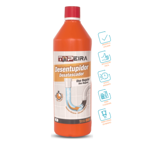 O Desentupidor Regular Topeira é ideal para uma limpeza regular das instalações, eliminando eficazmente os entupimentos provocados por restos de matéria orgânica, como cabelos e gorduras.