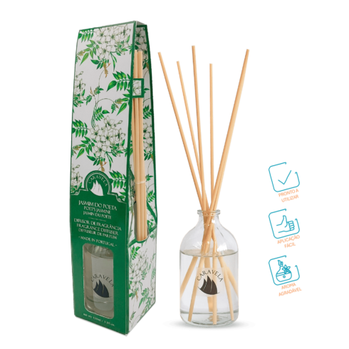 O Difusor de Palheta Jasmim do Poeta oferece delicadeza floral e inspiração aromática para ambientes com alma. Possui uma flagrância floral envolvente e subtilmente poética, trazendo leveza e elegância ao quotidiano, evocando o requinte dos jardins mediterrânicos.