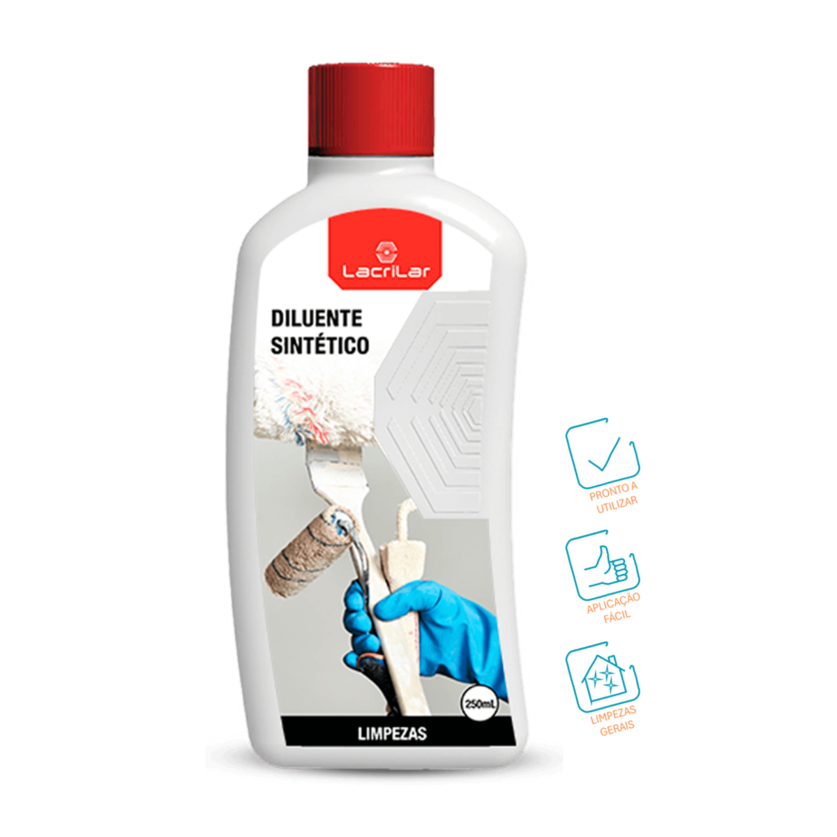 O Diluente Sintético é ideal para a limpeza de trinchas, rolos e pincéis. Este produto é reciclado e não deve ser utilizado como solvente de tintas e vernizes.