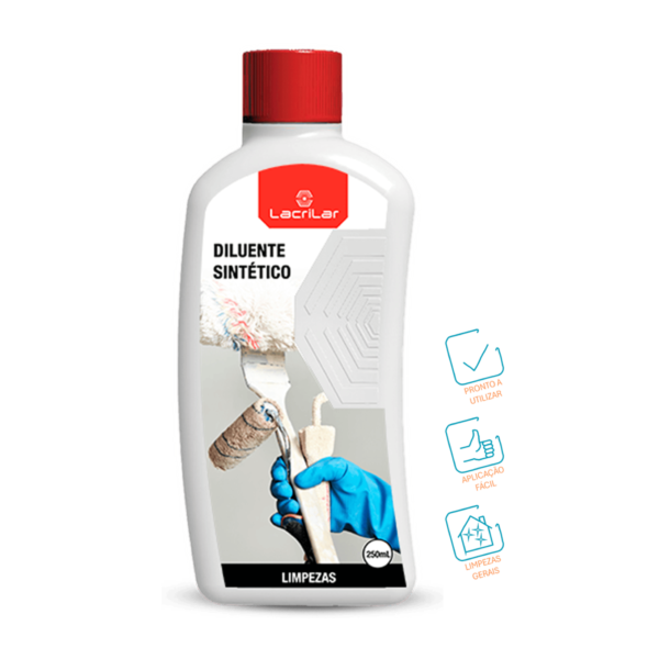 O Diluente Sintético é ideal para a limpeza de trinchas, rolos e pincéis. Este produto é reciclado e não deve ser utilizado como solvente de tintas e vernizes.
