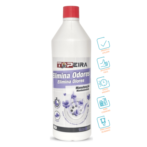 Remoção de Maus Odores: nas canalizações coloque cerca de 60ml de Topeira Elimina Odores diretamente na entrada do cano e aguarde 5 minutos. Após o tempo de espera verta água abundante. Periodicidade: Sempre que necessário.