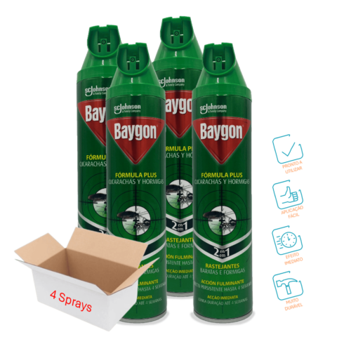 Inseticida contra baratas e formigas – Baygon (4 x Spray 400ml)