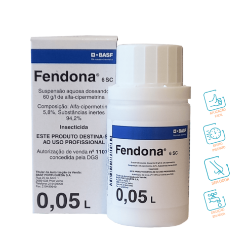 O Inseticida Fendona 6 SC é um produto de ação rápida e com um efeito residual duradouro. Permite combater uma grande variedade de pragas e insetos voadores ou rastejantes, conseguindo uma eficácia elevada utilizando doses reduzidas.