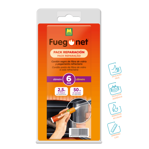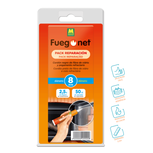 O Kit de Reparação das Juntas das Lareiras é utilizado na reparação do cordão que serve como junta de calafetação das lareiras, recuperadores de calor, fornos, caldeiras, entre outros. Evita fumos e perdas de calor.