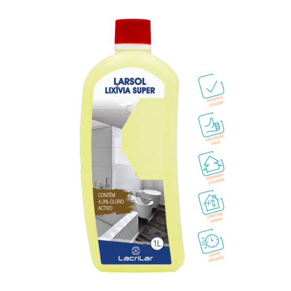 A Lixívia Larsol é ideal tanto para exteriores como para interiores. Este produto tem propriedades branqueadoras e desodorizantes.