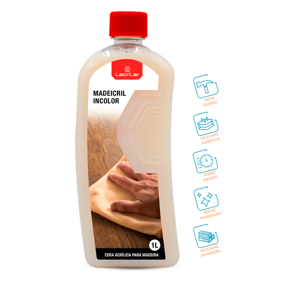 O Madeicril é uma cera acrílica autobrilhante ideal para madeiras, parquet, corticite, entre outros. Este produto é antiderrapante e não é necessário puxar o lustro.