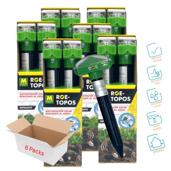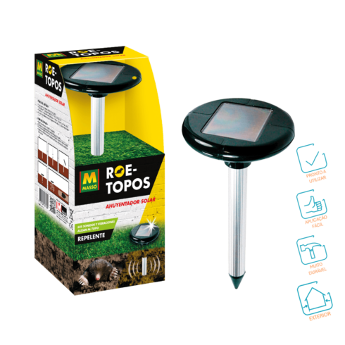 O Repelente Solar de Toupeiras e Roedores emite sons e vibrações de baixa frequência de 40 em 40 segundos para repelir as toupeiras e os roedores de forma eficaz.