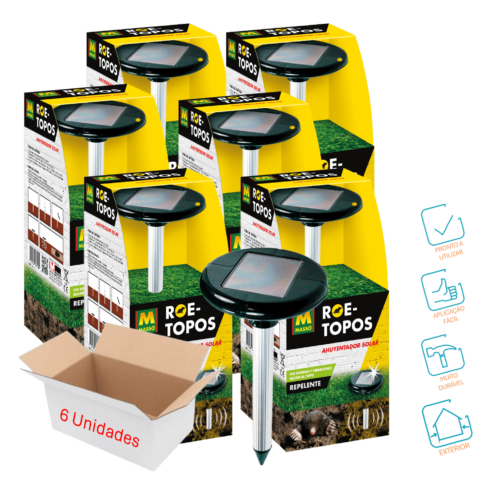O Repelente Solar de Toupeiras e Roedores emite sons e vibrações de baixa frequência de 40 em 40 segundos para repelir as toupeiras e os roedores de forma eficaz.