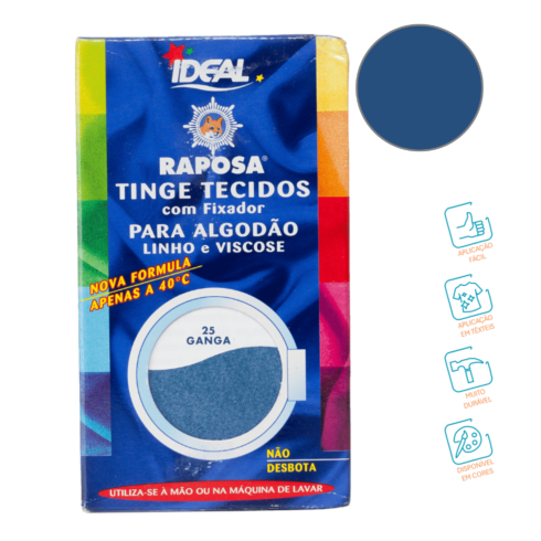 – Tinta indicada para o tingimento de tecidos de algodão, linho e viscose, podendo ser utilizado à mão ou na máquina de lavar roupa;