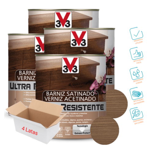 O Verniz Acetinado Ultra-Resistente Nogueira protege os móveis, objetos, portas, bancadas, entre outros. Proporciona uma alta proteção contra os riscos e as manchas.